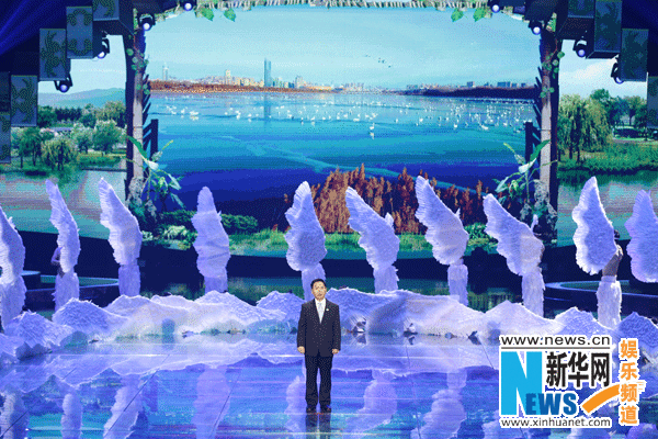 舞臺上,天鵝姑娘們揮舞著翅膀,翩翩起舞。河南省三門峽市委書記劉南昌緩緩開講,帶觀眾走進美麗的三門峽。上世紀50年代毛主席一聲號令,全國各地的水利建設(shè)者齊聚三門峽,發(fā)揮中流砥柱精神,新中國第一座大型水利工程三門峽大壩拔地而起,從此高峽出平湖,一座生態(tài)宜居之城就此誕生。三門峽之所以叫“天鵝之城”,是因為每年深秋上萬只白天鵝從西伯利亞遷徙至此,他們在天鵝湖壩引吭高歌、快樂生活。你也許去過世界上很多城市,但在市中心能看到這樣的畫面大概是絕無僅有。