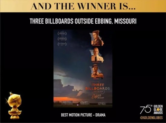《三塊廣告牌》成為電影類獎項最大熱門,奪得包括劇情類最佳電影在內(nèi)的四項大獎。弗朗西斯·麥克道曼奪得劇情類最佳女主角,加里·奧德曼憑借《至暗時刻》中深入人心的丘吉爾形象獲得劇情類最佳男主角;吉爾莫憑借今年威尼斯電影節(jié)大熱電影《水之形》獲得最佳導演獎;在國內(nèi)票房和口碑雙豐收的《尋夢環(huán)游記》毋庸置疑地奪得了最佳動畫獎;德國電影《憑空而來》獲得最佳外語片獎。