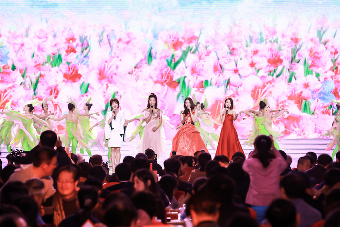 本次“百花迎春”大聯(lián)歡分為“春暖花開”、“春風(fēng)化雨”、“春華秋實(shí)”、“春光無限”4個(gè)篇章,展現(xiàn)我國(guó)文學(xué)藝術(shù)作品燦爛綻放、春光無限的美好景象。在聯(lián)歡活動(dòng)現(xiàn)場(chǎng),佟麗婭與戚薇、李梓萌、胡蝶攜手化身“美麗小花”擔(dān)任表演嘉賓,帶來歌曲《春暖花開》,表達(dá)了美好的新春愿景。在官方發(fā)布的現(xiàn)場(chǎng)照片中,佟麗婭身著紅色抹胸禮服傾情獻(xiàn)唱,和青春洋溢的舞蹈演員交相輝映,凸顯了喜氣洋洋的過年氛圍。據(jù)悉,在去年“百花迎春”春節(jié)大聯(lián)歡的舞臺(tái)上,佟麗婭就攜手王雷帶來了經(jīng)典陜北對(duì)唱民歌《一對(duì)對(duì)鴛鴦水上漂》。此次“百花迎春——中國(guó)文學(xué)藝術(shù)界2018春節(jié)大聯(lián)歡”會(huì)于春節(jié)期間登陸熒屏,佟麗婭將再展甜美歌喉,令人十分期待。