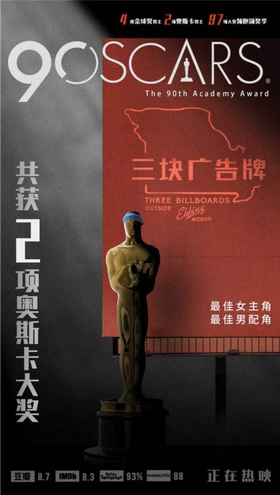 電影《三塊廣告牌》憑借各方面均不俗的表現(xiàn)共斬獲了本屆奧斯卡最佳女主角、最佳男配角2項(xiàng)大獎(jiǎng)。加上此次獲得的2項(xiàng)大獎(jiǎng),電影已經(jīng)斬獲97項(xiàng)大獎(jiǎng),今年頒獎(jiǎng)季完美收官。