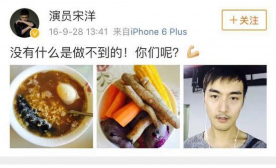 為了演好張保民,宋洋還完成了一個(gè)月內(nèi)增肥又減肥的壯舉,他曾在微博上曬出為減肥而定制的“魔鬼餐”,博文是“沒有什么是做不到的!”為了更好的演繹角色他已拼盡全力。