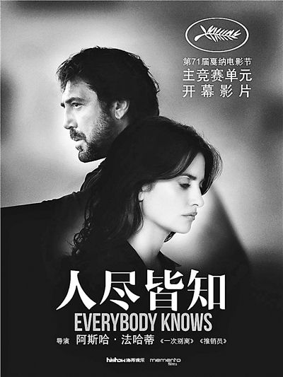 《人盡皆知》是阿斯哈·法哈蒂執(zhí)導(dǎo)的第一部西班牙語(yǔ)影片,也是2004年西班牙導(dǎo)演佩德羅·阿莫多瓦的《不良教育》后,第二部在戛納開(kāi)幕式上映的西語(yǔ)片。第71屆戛納電影節(jié)將于今年5月8日至19日舉行。