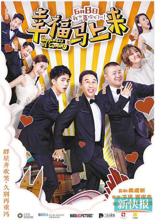 由黃建新監(jiān)制,馮鞏、崔俊杰執(zhí)導(dǎo),馮鞏、劉昊然、牛莉、賈玲、張小斐、岳云鵬等主演的爆笑動作喜劇電影《幸福馬上來》昨日發(fā)布了“山城暴走”版定檔海報(bào)及劇照,宣布定檔6月8日。