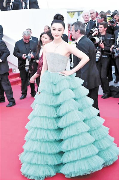 相比去年開幕紅毯的低調,今年范冰冰的紅毯裝束還是以造型為主。青綠色蛋糕裙的設計相當搶眼,出現(xiàn)在紅毯時,官方直播給足鏡頭,而且擁有主持人專門介紹的禮遇。