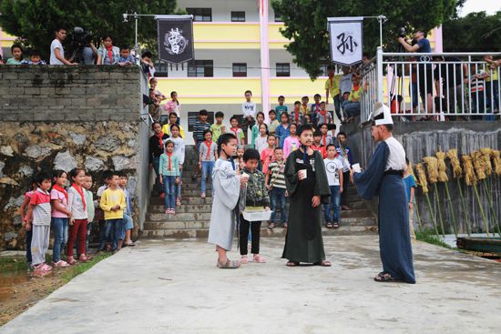 在昨晚的節(jié)目中,國家一級演員濮存昕,通過讓壩美法利小學(xué)的孩子們排演課本劇的方式,了解三國故事的歷史興衰。他借繪畫歷史人物成功吸引了孩子們的注意力,通過觀察孩子的性格在課堂上就決定了《草船借箭》的主演。但三年級的孩子毫無表演經(jīng)驗(yàn),課本劇的演出可謂是困難重重。第一重,臺詞念不準(zhǔn)。“大敵當(dāng)前”讀出得磕磕絆絆。第二重,毫無表演經(jīng)驗(yàn),孩子們在排練預(yù)演時(shí)緊張忘詞,不知道怎么演“暈”。第三重,天公不作美,在演出的那天忽然下起大雨;面對重重困難,濮老師耐心地講解臺詞,手把手教孩子演戲,告訴他們“每一分努力,就有一分收獲”,要學(xué)會相信自己的付出。在濮老師和孩子們的共同努力下,孩子們在舞臺上演得惟妙惟肖,周瑜的小肚雞腸、諸葛亮的神機(jī)妙算、曹操的灰頭土臉一一呈現(xiàn)在舞臺上,低成本完成大場面制作,獲得了鎮(zhèn)上觀眾的一致好評。