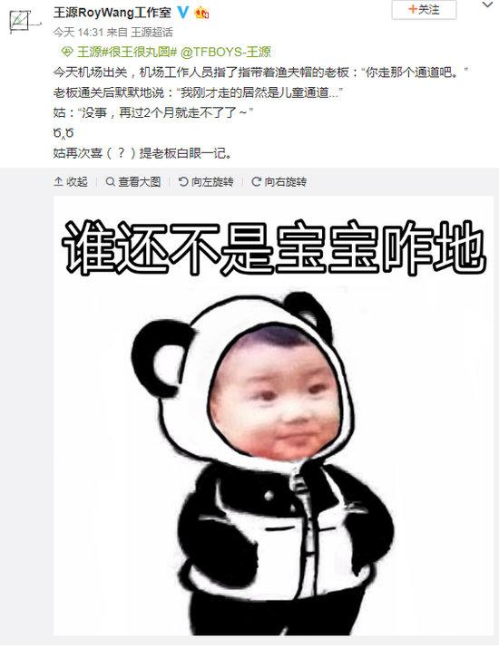 1日,王源工作室發(fā)微博分享王源趣事一則,并配圖王源自己的表情包“誰還不是寶寶咋地”。sx3安康新聞網(wǎng)