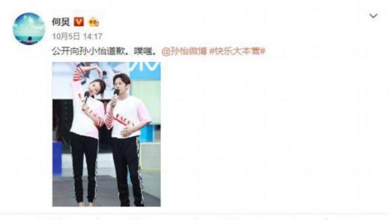 原標題:何炅微博向孫怡道歉,只因忽略這個動作