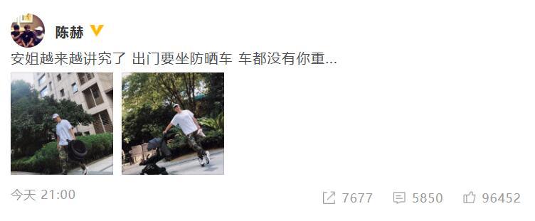 10月14日晚,陳赫發(fā)微博表示自己帶女兒出門玩耍卻嫌其太重了,意外遭網(wǎng)友調(diào)侃:可能是隨你了!