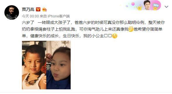 23日,賈乃亮在微博曬出與甜馨童年對比照,并稱:“六歲了,一轉(zhuǎn)眼成大孩子了,爸爸六歲的時(shí)候可真沒你那么聰明伶俐,整天被你奶奶拿根繩套柱子上怕我亂跑,可你淘氣勁兒上來還真像我,爸希望你簡簡單單,健康快樂的成長,生日快樂,我的小公主!BJi安康新聞網(wǎng)