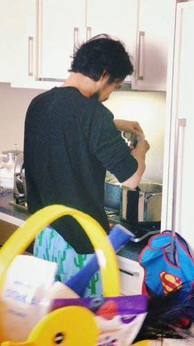 照片中袁弘滿臉大胡子、頭發(fā)凌亂,身穿家居服正在專心致志地為張歆藝做早餐。sY5安康新聞網(wǎng)