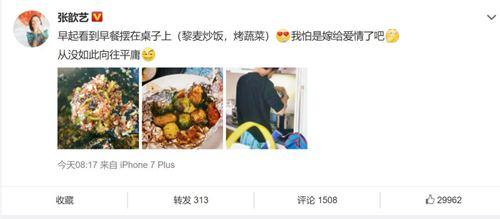今天一大早,久未露面,專心在家養(yǎng)胎的張歆藝就通過微博向廣大吃瓜群眾投射了大波狗糧!張歆藝曬出自己的早晨和袁弘的背影,并且配文稱:早起看到早餐擺在桌子上(黎麥炒飯,烤蔬菜),我怕是嫁給愛情了吧,從沒如此向往平庸。sY5安康新聞網(wǎng)