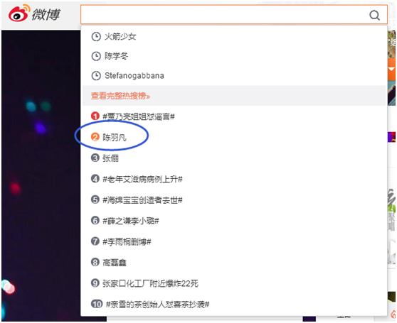 今天早上,有網(wǎng)友爆料稱陳羽凡吸毒被抓,該消息目前已經(jīng)排在微博熱搜第2位。