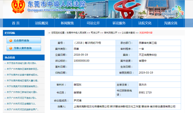 近日,蔡徐坤遭前公司上海依海影視文化傳播有限公司索賠一千萬(wàn),案由為不正當(dāng)競(jìng)爭(zhēng)糾紛,立案日期為9月19日,目前案件正在審理中。