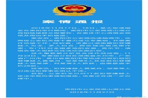近日有網(wǎng)友反映稱,11月17日、18日在貴州貴陽舉行的周杰倫演唱會期間,有多人手機被盜。今日(11月27日),貴陽市公安局觀山湖分局發(fā)布通報稱,案發(fā)后,貴陽市……