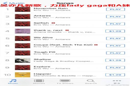 , , , , 近日,吳亦凡發(fā)行新單曲,在歐美iTunes榜單上力壓Lady Gaga和A妹,前十的榜單上更是占據(jù)七席,不過(guò)此番“屠榜”引來(lái)眾多國(guó)外網(wǎng)友的質(zhì)疑,表示不……