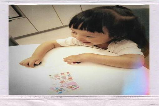 歐弟妻子曬女兒萌照,坐桌前認真貼畫超可愛