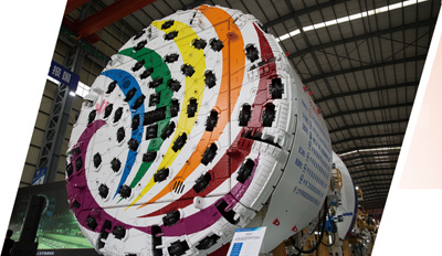 我國自主研制的、在昆明組裝的國內(nèi)最大直徑硬巖掘進(jìn)機“彩云號”,以白色刀盤為底,用橙、黃、藍(lán)、綠、紫五色繪出一幅孔雀圖案。 |