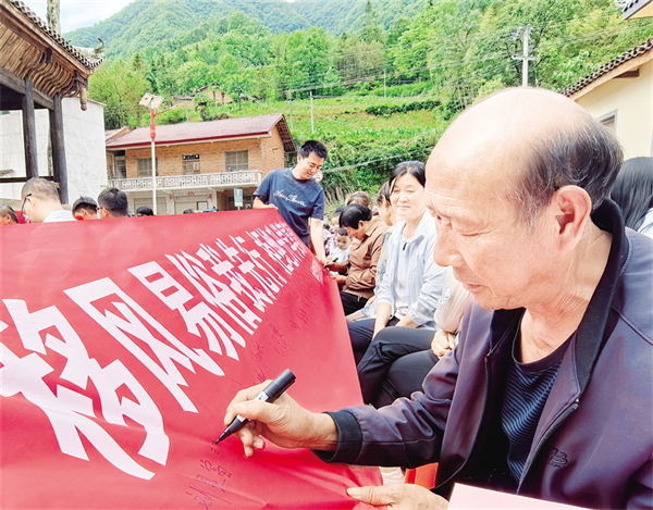近日,漢濱區(qū)葉坪鎮(zhèn)在慶祝中國(guó)共產(chǎn)黨成立104周年活動(dòng)現(xiàn)場(chǎng),開展“移風(fēng)易俗我先行 拒絕升學(xué)宴請(qǐng)風(fēng)”簽名和宣講活動(dòng)。 胡子新 攝