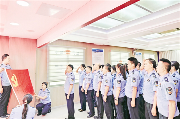 6月26日,紫陽(yáng)縣司法局組織機(jī)關(guān)黨支部黨員、局機(jī)關(guān)及下屬單位干部職工開展“重溫入黨誓詞 汲取奮進(jìn)力量”主題黨日活動(dòng)。葉明星 攝