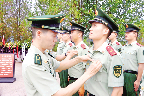 日前,武警安康支隊(duì)組織官兵赴平利縣老縣鎮(zhèn)蔣家坪村和牛蹄嶺戰(zhàn)役遺址公園開展形式多樣的主題黨日活動(dòng),引導(dǎo)廣大官兵在追尋歷史根脈、接受思想洗禮中堅(jiān)定“聽黨話、跟黨走”的政治信念。趙坤 陳翔 攝