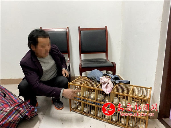 據(jù)了解,1月16日晚上21時(shí)30分許,民警馬玉壽在鎮(zhèn)安車站候車室執(zhí)勤時(shí),接到安檢員反饋,一男性旅客攜帶物品疑似有活體鳥類。民警對(duì)該男子行李檢查后發(fā)現(xiàn),其包內(nèi)所裝有9只畫眉鳥活體,民警遂將該男子帶回辦案區(qū)進(jìn)行調(diào)查。