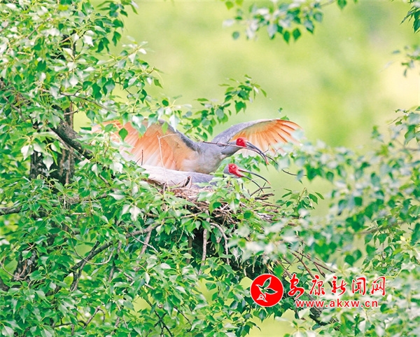 朱鹮正在輪崗進(jìn)行孵化 寧陜?nèi)诿焦?span style="display:none">ijV安康新聞網(wǎng)
