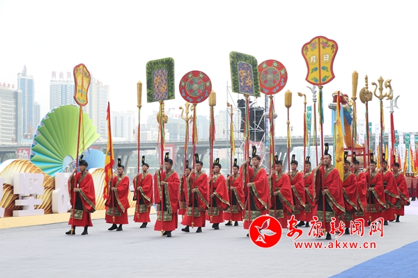 “請龍了”上午9時整,觀禮臺上空傳來小女孩清澈空靈的聲音,龍舟主題活動進入第一篇章——“龍騰漢江·祭”。百面大鼓同時敲響,請龍方陣步履矯健,護送龍頭至觀禮臺正中。百名少年兒童著漢服、持竹簡、頌祭文,主祭官捋龍須、撣浮塵、三叩首。18名壯漢敬酒摔碗祭龍頭,合龍方陣護送龍身緩步走來,鼓樂齊鳴中完成合龍。龍頭祭祀圓滿禮成,儀式莊嚴而神圣,傳遞出安康萬千百姓祈福風調(diào)雨順、萬家平安的美好心愿。