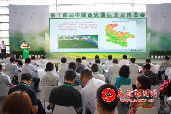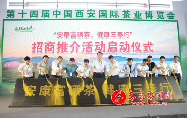 本網(wǎng)訊 (記者 陸青波)8月21日,借助第十四屆西安國(guó)際茶業(yè)博覽會(huì)平臺(tái), 我市在西安啟動(dòng)“安康富硒茶、健康三秦行”首場(chǎng)招商推介活動(dòng)。中國(guó)茶葉流通協(xié)會(huì)會(huì)長(zhǎng)、全國(guó)茶葉標(biāo)準(zhǔn)委員會(huì)主任王慶,陜西省農(nóng)業(yè)農(nóng)村廳黨組成員、副廳長(zhǎng)王韜,陜西省供銷(xiāo)合作總社黨組成員、副主任劉慶,陜西省茶業(yè)協(xié)會(huì)會(huì)長(zhǎng)紀(jì)曉明出席啟動(dòng)儀式,市政協(xié)副主席馬曉旬宣布“安康富硒茶、健康三秦行”招商推介活動(dòng)啟動(dòng)。