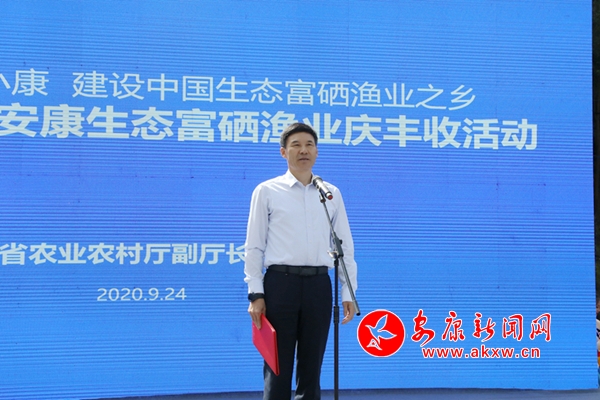 本網(wǎng)訊(記者 艾蓓)9月24日上午,由省農(nóng)業(yè)農(nóng)村廳、安康市人民政府主辦的2020年中國(guó)農(nóng)民豐收節(jié)·陜西安康生態(tài)富硒漁業(yè)慶豐收活動(dòng)在嵐皋縣南宮山鎮(zhèn)嵐翠湖舉行。省農(nóng)業(yè)農(nóng)村廳副廳長(zhǎng)蔡斌宣布活動(dòng)啟動(dòng),市委副書記、市長(zhǎng)趙俊民致辭,市委副書記王剛主持,市政協(xié)副主席、嵐皋縣委書記周康成出席活動(dòng)。