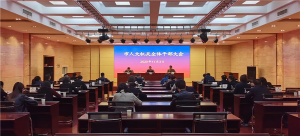 常委會(huì)黨組會(huì)議結(jié)束后,機(jī)關(guān)黨組緊接著召開縣級(jí)以下全體干部會(huì)議,傳達(dá)學(xué)習(xí)黨的十九屆五中全會(huì)精神,安排部署了機(jī)關(guān)工作。