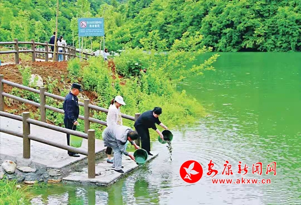 c3M安康新聞網 “桃花島”放生魚苗 沈沙沙 攝c3M安康新聞網