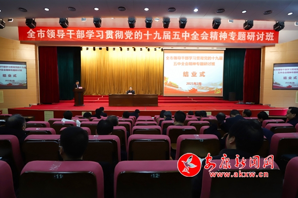 本網(wǎng)訊(記者 吳單)2月25日,全市領(lǐng)導(dǎo)干部學(xué)習(xí)貫徹黨的十九屆五中全會精神專題研討班在市委黨校結(jié)業(yè),市委副書記王剛作總結(jié)講話。全體學(xué)員參加結(jié)業(yè)式并集中收看了全國脫貧攻堅(jiān)總結(jié)表彰大會直播,5名學(xué)員代表作交流發(fā)言。