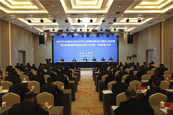 春風(fēng)吹奮進(jìn),反詐正當(dāng)時(shí),3月9日,中共安康市委、安康市人民政府在紫陽(yáng)縣召開(kāi)2021年安康市全民反詐行動(dòng)現(xiàn)場(chǎng)推進(jìn)會(huì)暨打擊治理電信網(wǎng)絡(luò)新型違法犯罪工作第一次聯(lián)席會(huì)議,認(rèn)真學(xué)習(xí)貫徹習(xí)近平總書(shū)記關(guān)于打擊治理電信網(wǎng)絡(luò)新型違法犯罪工作重要指示精神,全面落實(shí)中省部署新要求,推動(dòng)構(gòu)建“黨政主導(dǎo)、部門(mén)主責(zé)、公安主打、群眾主體”四位一體全社會(huì)反詐新格局,以“兩降四無(wú)”(發(fā)案數(shù)下降、群眾損失下降,無(wú)電信網(wǎng)絡(luò)詐騙案件、無(wú)詐騙犯罪嫌疑人、無(wú)“兩卡”涉案人員、無(wú)詐騙窩點(diǎn))為創(chuàng)建標(biāo)準(zhǔn),在全省率先從全市層面全面鋪開(kāi)“無(wú)詐村(社區(qū))、單位、鎮(zhèn)(辦)”創(chuàng)建活動(dòng)暨全民反詐行動(dòng),把打贏反詐人民戰(zhàn)爭(zhēng)作為政法隊(duì)伍教育整頓為群眾辦好的一件實(shí)事,進(jìn)一步助力市域社會(huì)治理現(xiàn)代化和更高水平平安安康建設(shè),推動(dòng)安康政法工作高質(zhì)量發(fā)展。