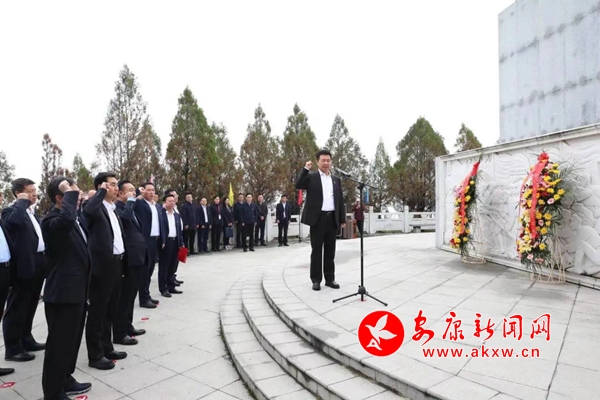 牛蹄嶺戰(zhàn)役遺址是全市愛國主義教育基地,中國人民解放軍第十九軍在此打響的牛蹄嶺戰(zhàn)役為解放安康乃至陜南作出了重要貢獻。春日的牛蹄嶺蒼勁翠郁、豐碑聳立。上午9時許,市委常委班子成員拾階而上來到牛蹄嶺戰(zhàn)役紀念碑廣場,向在戰(zhàn)役中英勇犧牲的革命烈士默哀并敬獻花籃,表達緬懷之情。面對黨旗,大家重溫入黨誓詞,鏗鏘的宣誓聲響徹牛蹄嶺、回蕩山谷間。隨后,大家認真聆聽激戰(zhàn)牛蹄嶺的紅色歷史,瞻仰牛蹄嶺戰(zhàn)役紀念碑,追憶革命先輩英勇無畏、舍生取義的崢嶸歲月。
