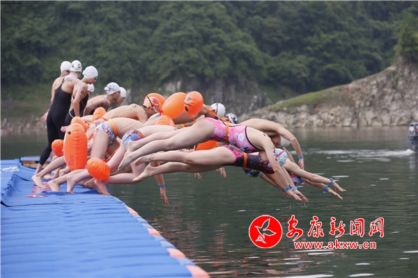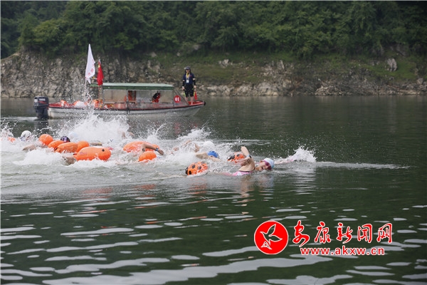 上午8時(shí)許運(yùn)動(dòng)員從駐地到達(dá)瀛湖,嚴(yán)格按照檢錄程序進(jìn)入比賽場(chǎng)地。上午9時(shí),在省組委會(huì)體展中心激情四射的現(xiàn)場(chǎng)解說中,隨著一聲哨響,來自陜西浩沙隊(duì)的8名專業(yè)選手和安康市的12名業(yè)余選手精神抖擻縱身躍入水中,平靜的江面瞬間浪花飛濺。只見游泳健兒們一個(gè)個(gè)你追我趕、奮勇爭(zhēng)先,充分展示著健美的身軀、頑強(qiáng)的意志。經(jīng)過120多分鐘的激烈角逐,劉魯鵬、屈芳分獲專業(yè)組10公里馬拉松游泳男女第一名,周辰驍、王子一分獲公開組3公里男女第一名。