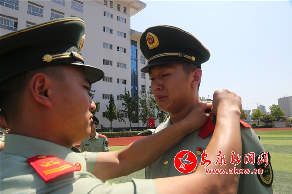 “我是中國(guó)人民武裝警察部隊(duì)軍人,我宣誓……”離隊(duì)前,武警安康支隊(duì)組織滿服役期士兵開(kāi)展退役儀式。滿服役期老兵身披綬帶、胸戴紅花,最后一次站在軍旗前以軍人的身份,重溫誓詞、向軍旗敬禮。期間,留隊(duì)?wèi)?zhàn)友為滿服役期士兵卸下警銜、領(lǐng)花、帽徽和胸標(biāo),為他們戴上“光榮花”。“8年了 ,突然要離開(kāi),還真有點(diǎn)舍不得。”卸下肩章的那一刻,下士趙毅璞眼中泛起的淚花忍了又忍,終究還是沒(méi)能忍住。