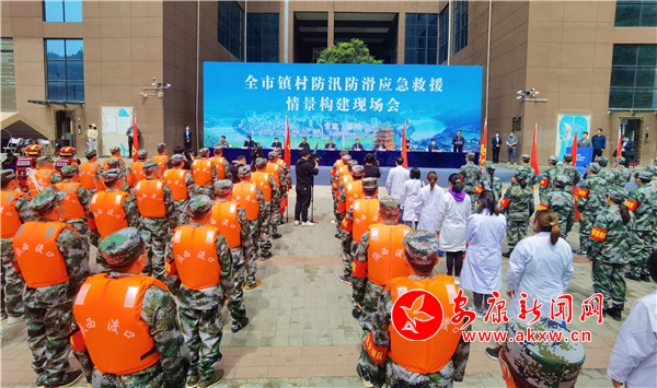 當天模擬演練以紫陽縣任河流域在主汛期3日內降水量超過200毫米,任河出現(xiàn)超警戒洪水和突發(fā)山洪地質災害為背景。選定受洪水、山洪及地質災害威脅嚴重的毛壩鎮(zhèn)和高灘鎮(zhèn)2個重點鎮(zhèn)、4個具有代表性的村(社區(qū))組織應急演練,對監(jiān)測預警、會商研判、巡查監(jiān)測、應急響應、現(xiàn)場救護、強制撤離、迎戰(zhàn)洪水、緊急救援、安置保障等共9個科目20個場景進行情景化、實戰(zhàn)化、系統(tǒng)化演習,通過全流程推演、全要素配置、全鏈條實操,全面檢視我市防汛體制優(yōu)化調整運行機制和成效。
