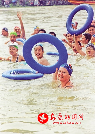 第一屆龍舟節(jié)的游泳隊中還有英國支教老師琳達(dá)的身影。吳永東 攝
