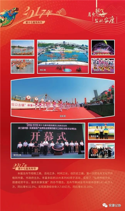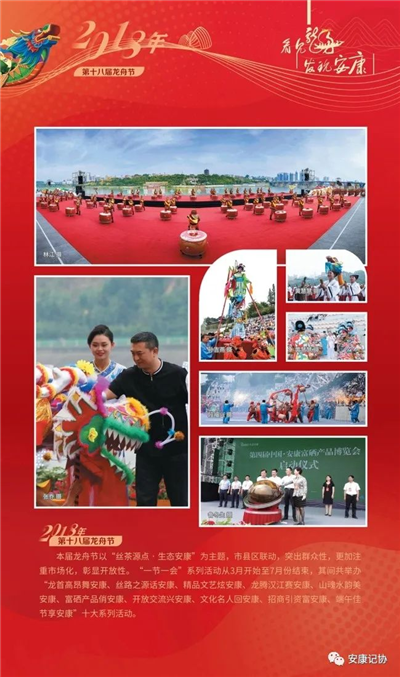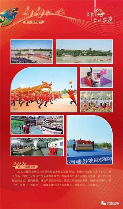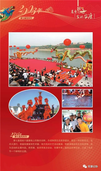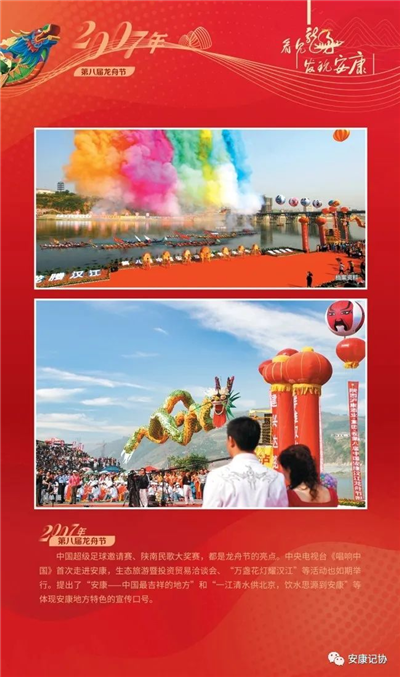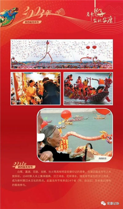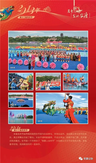 每一個(gè)珍貴的瞬間,都是安康社會(huì)發(fā)展的典藏。安康漢江龍舟競(jìng)渡歷史悠久、源遠(yuǎn)流長(zhǎng)。特別是進(jìn)入新世紀(jì)以來(lái)的2000年至今,“中國(guó)安康漢江龍舟節(jié)”已成功舉辦21屆,先后入選“中國(guó)十大魅力節(jié)慶”、中國(guó)體育類非物質(zhì)文化遺產(chǎn)保護(hù)與推廣項(xiàng)目,成為我市聚集人氣、繁榮文化、發(fā)展經(jīng)濟(jì)、擴(kuò)大開(kāi)放的金色名片。