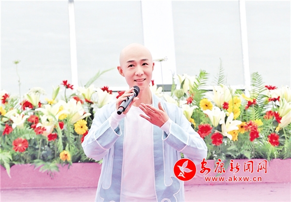 2021年,第二十一屆安康龍舟節(jié),“梅蘭芳第三代傳人”安康人董飛為開幕式獻唱。 潘潤生 攝