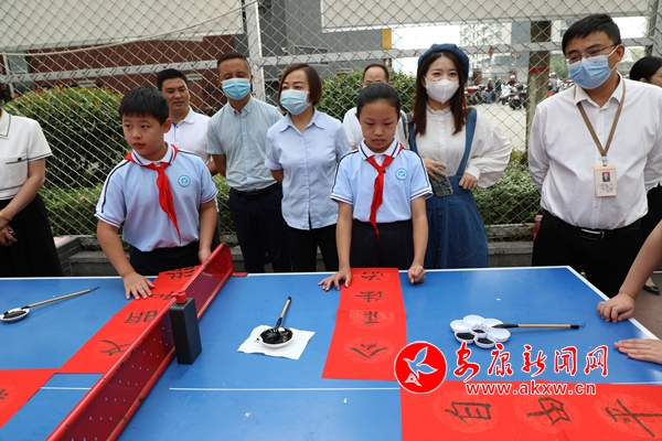 簡短的啟動儀式結(jié)束后,市創(chuàng)文辦一行參觀了社區(qū)書吧,并在運動場觀看未成年人展示活動。展示內(nèi)容主要包括現(xiàn)場書寫社會主義核心價值觀、集體花樣跳繩、籃球訓練、獨唱、個人武術(shù)和倡議書宣讀,F(xiàn)場,同學們身著整齊的服裝,戴著鮮艷的紅領(lǐng)巾,精神煥發(fā)地來到展示場地。在熱烈歡快的節(jié)奏中,一張張笑臉洋溢著自信和陽光,舉手投足間盡顯安康少年風采。流暢的書法、炫酷的跳繩、優(yōu)美的歌聲、靈動的棍法……孩子們的精彩表演引來一眾居民駐足圍觀,不時傳來熱烈掌聲。