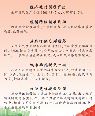 有效保障改善民生,共享新成果。完成10大類210個民生實事票決項目建設(shè)任務(wù)。民生財政支出300.58億元,占一般公共預(yù)算支出81.3%。城鄉(xiāng)居民人均可支配收入增長4.9%和7.3%,排名全省第2位和第1位。城鎮(zhèn)新增就業(yè)2.02萬人,開發(fā)公益性崗位4.65萬個。實施教育強(qiáng)基項目91個、新增學(xué)位7340個。建成市級以上健康細(xì)胞工程489個,人均預(yù)期壽命提高到78.43歲,獲評“陜西健康城市建設(shè)樣板”市。城鄉(xiāng)居民基本養(yǎng)老保險參保率達(dá)到99%、醫(yī)保參保率達(dá)到97%以上。“鄉(xiāng)村文化理事會”入選全國文化旅游領(lǐng)域改革創(chuàng)新十大案例。