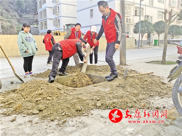 紫陽(yáng)縣高橋鎮(zhèn)桂花樹社區(qū)黨支部開展“傳承雷鋒精神,爭(zhēng)做綠色使者”主題黨日活動(dòng),黨員們共植樹300余棵,進(jìn)一步美化了社區(qū)環(huán)境。 李放 王順勤 攝