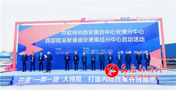 本網(wǎng)訊(記者 艾蓓)3月24日,中歐班列西安集結(jié)中心安康分中心、西部陸海新通道安康集結(jié)分中心啟動活動在安康東站鐵路貨場舉行。市委書記武文罡宣布發(fā)車,并分別與西安國際港務(wù)區(qū)黨工委委員、西安綜合保稅區(qū)專職副主任王運動,重慶市政府口岸和物流辦公室二級巡視員陶亮共同為“中歐班列西安集結(jié)中心安康分中心”“西部陸海新通道安康集結(jié)分中心”揭牌。