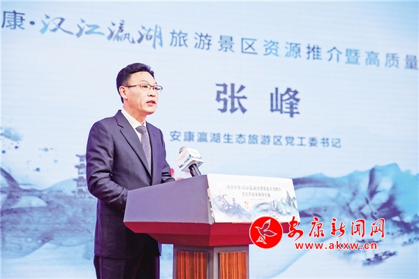 在上半場瀛湖景區(qū)資源推介會序幕上,安康瀛湖生態(tài)旅游區(qū)黨工委書記張峰致辭表達了對大會順利召開的美好愿景,生動介紹了秦嶺衛(wèi)士瀛湖的純凈之美,并歡迎各界朋友做客瀛湖、棲居瀛湖。瀛湖生態(tài)旅游區(qū)旅游局局長徐譜詳細介紹了瀛湖四季美景、豐富物產(chǎn)和怡人風(fēng)光。