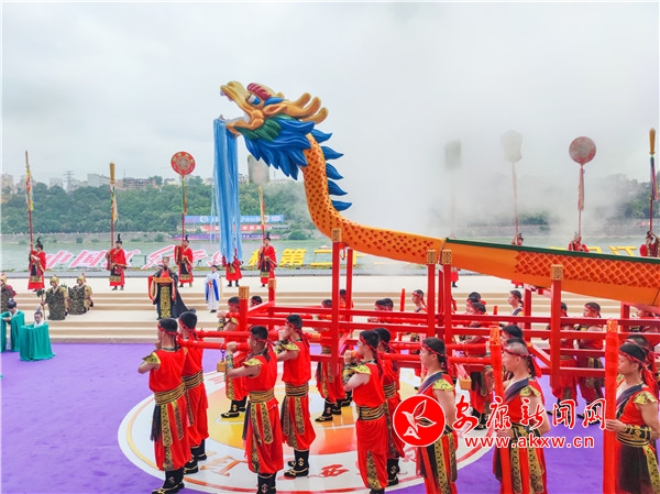 渾厚雄壯的“喊江調(diào)子”中,江面28艘龍舟抖擻精神、踏浪而來,江岸健身龍表演同步登場(chǎng),朝氣蓬勃。歌舞《安安康康鬧龍舟》、陜南民歌聯(lián)唱《漢水歡歌》、龍舟橫渡、健身操《活力安康》配合摩托艇“水上飛人”、傳統(tǒng)漢劇《漢江上傳唱著漢調(diào)二黃》等精彩節(jié)目輪番上演,搶鴨子摸鯉魚、民俗舞蹈《方寸之間》等安康特有民俗節(jié)目將現(xiàn)場(chǎng)氛圍推上一輪又一輪高潮。最終,開幕式在歌舞《幸福安康》中圓滿落下帷幕。