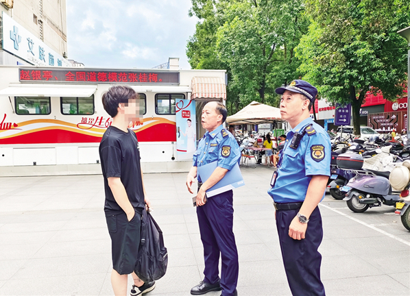 7月26日上午9時,安康市城市管理執(zhí)法局漢濱分局執(zhí)法人員沿金州路巡查至南方百貨門前廣場時,發(fā)現(xiàn)一名年輕男子很隨意地往地上吐了一口痰,隨即準(zhǔn)備離開。