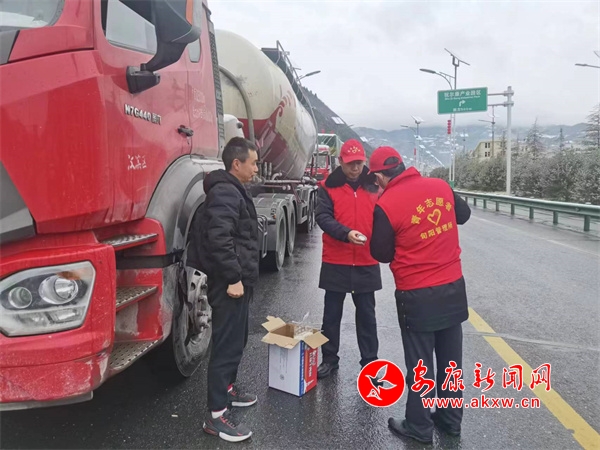天寒地凍,暖心之舉驅(qū)寒意。在旬陽,志愿者為滯留司機規(guī)劃行車路線,送上熱水、方便面、面包、奶茶等愛心餐食;在白河,志愿者為滯留司乘送去熱姜湯以及饅頭、雞蛋等食物;在石泉,云霧山鎮(zhèn)聯(lián)合高速收費站為旅客準備暖心面條,收費站秒變愛心驛站……