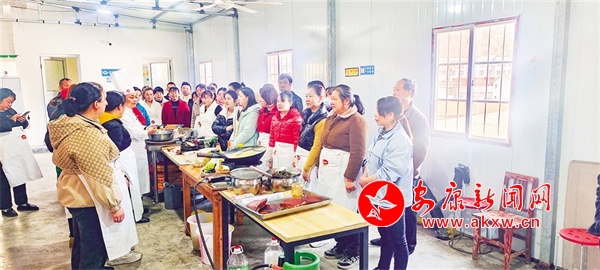 在培訓學校,專業(yè)老師指導學員烹飪本地美食