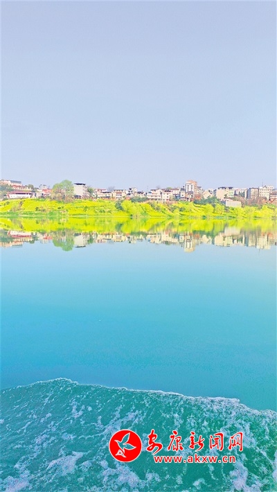 春分之際,漢江游船畫舫從西城坊出發(fā),途徑關(guān)廟、早陽等鎮(zhèn),直抵本次航行的終點(diǎn)站——石梯鎮(zhèn)。將近一個小時的航程中,兩岸美景盡收眼底,金黃燦爛的油菜花鋪陳在起伏的丘陵原野上,江岸楊柳依依、桃花盛開,民居與自然美景融為一體,倒映在碧綠的江面上,直教人看一眼便覺心曠神怡。